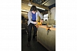 Шлифмашину можно использовать и как ручной инструмент, и как компактный станок. Возможность крепления к столу или верстаку вверх подошвой предусмотрена штатно: в корпусе есть отверстия для съемных винтовых струбцин, которые, наряду со специальной резиновой прокладкой, входят в комплект поставки. Еще один аксессуар из базового комплекта – съемный регулируемый упор заготовки. Он крепится к подошве двумя винтами и по принципу действия отдаленно напоминает фрезерный упор: на него можно опереть заготовку, он помогает задать и удержать глубину съема материала.
