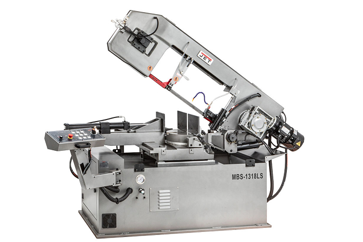 Модель MBS-1318LS имеет регулируемую направляющую для регулировки прохода ленточного полотна в зависимости от формы заготовки и ее диаметра. Направляющие блоки осуществляют позиционирование полотна непосредственно под прямым углом к поверхности обрабатываемой заготовки. Максимальная стойкость ленточного полотна обеспечивается подачей СОЖ в зону резания.