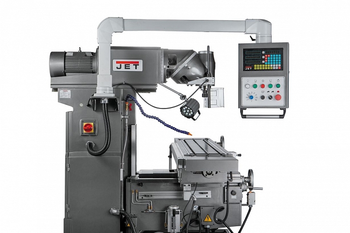 Универсальный фрезерный станок JET JUM-1153VHXL DRO – мощный и производительный станок в линейке оборудования компании. Он удовлетворит требованиям самого взыскательного заказчика и рассчитан на тяжелые условия эксплуатации и длительные нагрузки. Станок предназначен для всевозможных видов фрезерной обработки, сверления, растачивания и прочих операций при производстве деталей мелкими сериями на механо-обрабатывающих, инструментальных и ремонтно-механических участках.