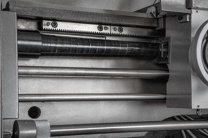 Конструктив GH-1640 ZX DRO имеет облегченное исполнение. Это достигается, прежде всего, за чет снижения металлоемкости станины, направляющие которой закаляются и шлифуются по фирменной технологии. Предусмотрена регулировка зазоров при помощи клиновых планок.