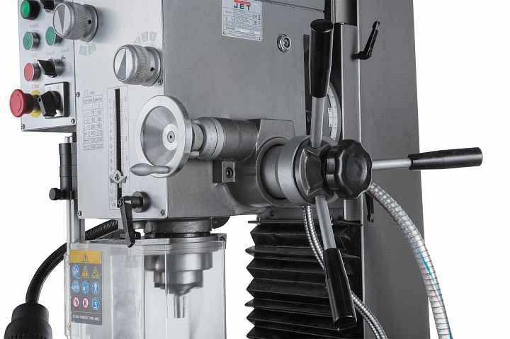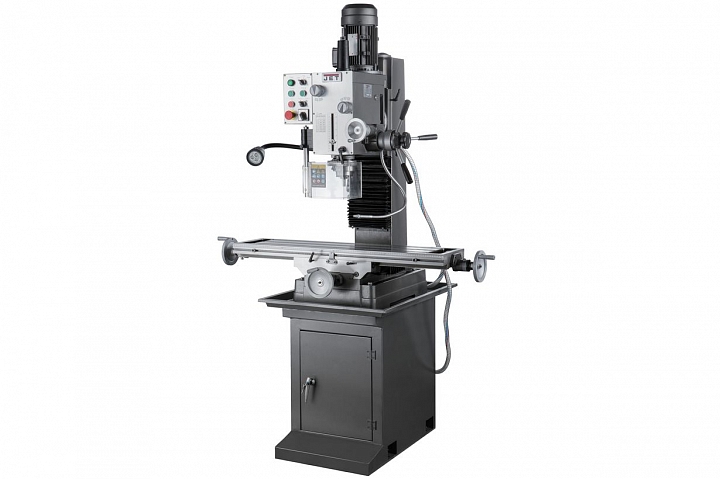 Фрезерно-сверлильный станок JMD-45L представляет собой универсальный тип станочного оборудования, выпускаемого компанией JET. Модель рассчитана на выполнение полного спектра фрезерных и сверлильных работ, нарезания резьбы, выполнения других технологических операций. Оборудование разработано для индивидуального использования, пригодно для производственного цикла. Мощный двигатель и сама конструкция станка рассчитаны на длительные режимы обработки. Станок имеет мощную литую станину из серого чугуна. Массивная стойка дополняет прочность и устойчивость всей конструкции.