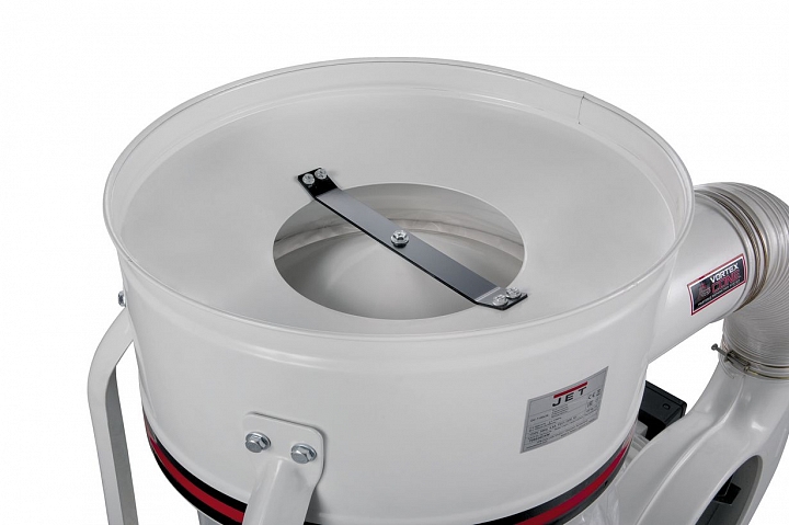 Мощная производительная вытяжная установка Jet DC-1100CK для профессиональной эксплуатации с деревообрабатывающим оборудованием всех типов. Модель комплектуется высокоэффективным фильтрующим картриджем, способным удерживать частицы диаметром от 2 мкм, что является на сегодня самым передовым стандартом. Другая важная особенность – высокая фактическая емкость пылесборника, которая достигается благодаря применению новой технологии Vortex Cone. Ее суть в организации воздушного потока внутри сепаратора таким образом, чтобы выпавшие в осадок частицы не подхватывались вновь, что способствует более плотной укладке мусора и уменьшению отложений в выходном фильтре (его очистка производится стряхиванием при повороте специальной ручки). Эти особенности позволяют использовать DC-1100CK на одном уровне с более мощными моделями классической конструкции, не имеющих конуса для разделения объемов накопления и сепарации.